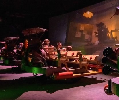 Riders take their seats on their very own Hyperakselerator’s, and are encouraged to strap in tight as they embark on a test flight, with Ludvig and Solan, from the very top of Pinch Cliff. Starting at Felgen’s workshop and entertained by Solan and Ludvig’s witty commentary, they encounter plenty of challenges and surprises along the way on an unpredictable dash down the mountainside.
